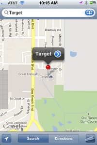 - Or, as a shortcut for step one, ask Siri, "Where is Target [Your Town]" Then, by tapping on the red pin, you’ll land on the correct info in the maps program and be able to add it as a contact.